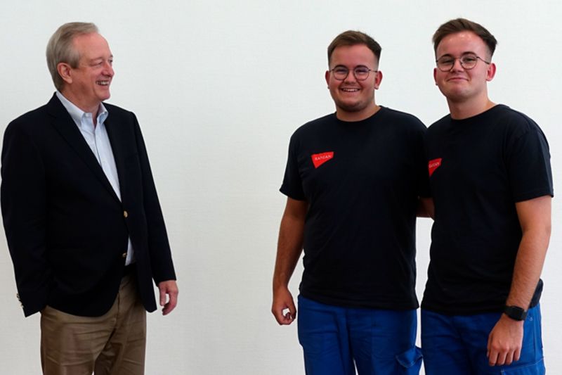 Michael Sablatnig, Geschäftsführer der Reflex GmbH & Co. KG und Deniz Baysan, Papiertechnologe im zweiten Ausbildungsjahr