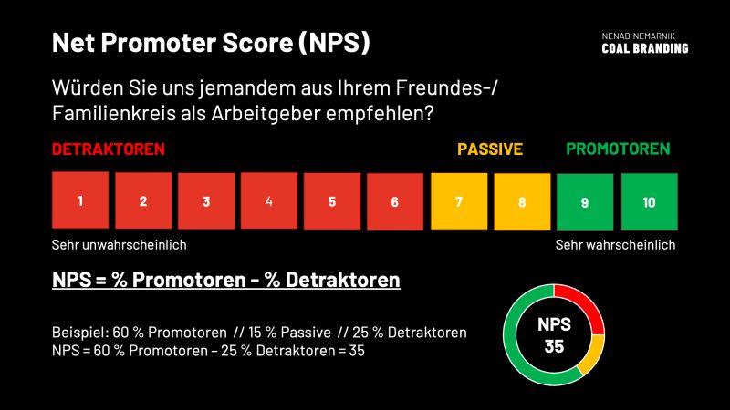 Leider kann man kein Thermometer an das Betriebsklima halten – aber es gibt unterschiedliche Methoden, es zu »messen«. Dies reicht von sehr aufwändigen Mitarbeitendenbefragungen mit Tiefeninterviews bis hin zu einfachen Tools wie dem »Net Promoter Score« (NPS). Hierbei wird in regelmäßigen Abständen die simple Frage gestellt: »Würden Sie uns einem guten Freund oder Familienmitglied als Arbeitgeber empfehlen?« Aus den Antworten von 1 bis 10 wird mathematisch der NPS ermittelt: