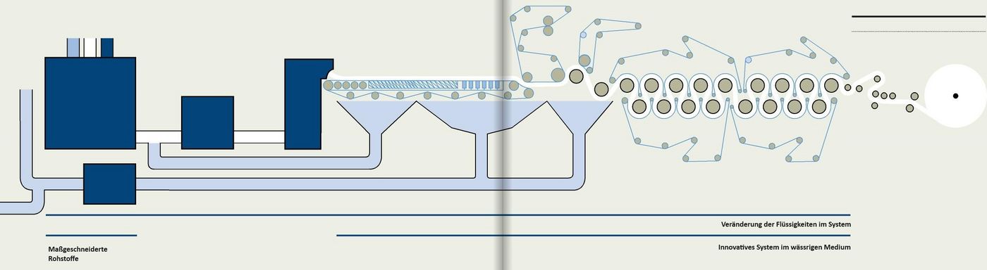 In diesem Forschungsbereich geht es darum, die der- zeitige Produktion von Papier im wässrige n Medium hinsichtlich des Energieverbrauchs zu optimieren, um eine deutlich höhere Primärenergieausbeute zu erzielen. Kurz gesagt: Es soll so wenig Wasser wie möglich verwendet werden. Untersucht werden dabei die bereits genannten Faserstoffeigenschaften, der Einsatz neuartiger und die Optimierung bestehender Verfahren zur mechanischen Entfernung von Wasser vor dem thermischen Trocknungsprozess, die Steigerung der Primärenergieeffzienz bei der Bahntrocknung und die Gestaltung eines sogenannten adiabatischen Prozesses, bei dem möglichst keine Energie aus dem System entweicht.