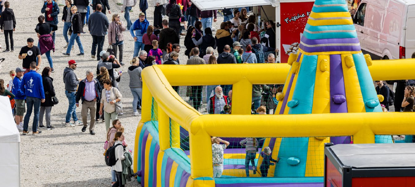 Ist das alles geklärt, geht es an die fröhliche Seite des Events. Gibt es – etwa für Kinder – weitere Attraktionen wie Papierschöpfen oder eine Hüpfburg, ist eine Bewirtung der Gäste vorgesehen. Die Progroup hatte dazu aus dem Vollen geschöpft und regionale Vereine und Partnerunternehmen einbezogen. Bei der SG Union Sandersdorf konnte man sein fußballerisches Geschick unter Beweis stellen. Beim Ruderverein galt es, am Ruderergometer seine Kraft testen. An der Station der Feuerwehr schlugen beim Anblick des Löschzugs Technikherzen höher. Die BSW Sixers luden zum Basketball-Körbewerfen ein und die jüngsten Gäste tobten sich auf der Hüpfburg aus oder verwandelten sich beim Kinderschminken in bunte Fabelwesen und wilde Piraten. Hinzu kamen verschiedene musikalische Acts wie DJ Acki, Regionalgröße »Ventura Fox« oder Kinderliebling »Schildegart«. Auch die Turnerinnen der SG Chemie Bitterfeld sorgten für ein abwechslungsreiches Programm auf und an der Bühne.
