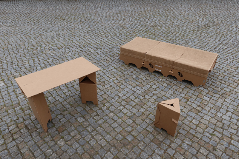 Bei Naturkatastrophen stehen Hilfsorganisationen oft vor dem Problem schnellstens Unterkünfte mit einem Minimum an Möblierung für die Menschen bereitzustellen, die Hab und Gut und das Dach über ihrem Kopf verloren haben. Die Bevorratung und schnelle Bereitstellung von Massen-Hilfsgütern ist ein immenses logistisches Problem. So ist es kaum zu kalkulieren, wie viele Feldbetten jährlich bereitgestellt werden müssen. Hier haken die Macher von Aidboard ein. Sie entwickeln Einweg-Feldmöbel aus Wellpappe & Naturfasern. Die Gestaltung erlaubt günstige und massenhafte Verfügbarkeit, sowie einfaches Recycling oder umweltverträgliche Entsorgung. Gelagert werden können sie in flach gepackten und leichten Bausätzen. Bei Bedarf kann über die Wellpappenindustrie weltweit schnell Nachschub geordert werden. Vorreiter- Kunden mit internationaler Leitbildfunktion sollen helfen, das Produkt bekannt zu machen.