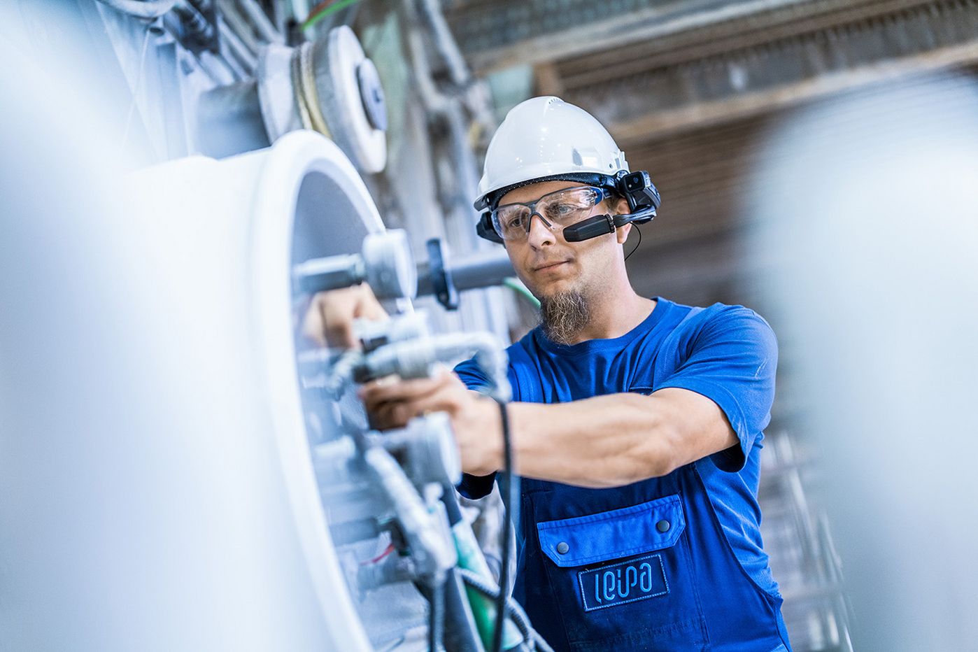 Wie das Video-Fernunterstützungs-Tool die Effizienz steigern und damit dem Kunden einen nachvollziehbaren Mehrwert bieten kann, wurde mit der Inbetriebnahme deutlich. »Der Raum war bereits vorbereitet und die Sensoren angebracht«, erinnert sich Patrick Dengel, Manager Digital Tools bei Voith. »Wir haben die Details über OnCall.Video abgewickelt. Dazu wurde die Brille in das LEIPA WLAN integriert, über das eine Video- und Audioverbindung zu den Voith-Experten in Heidenheim hergestellt wurde.« Ohne die Fernverbindung wäre das VR-System nicht so schnell funktionsfähig gewesen.