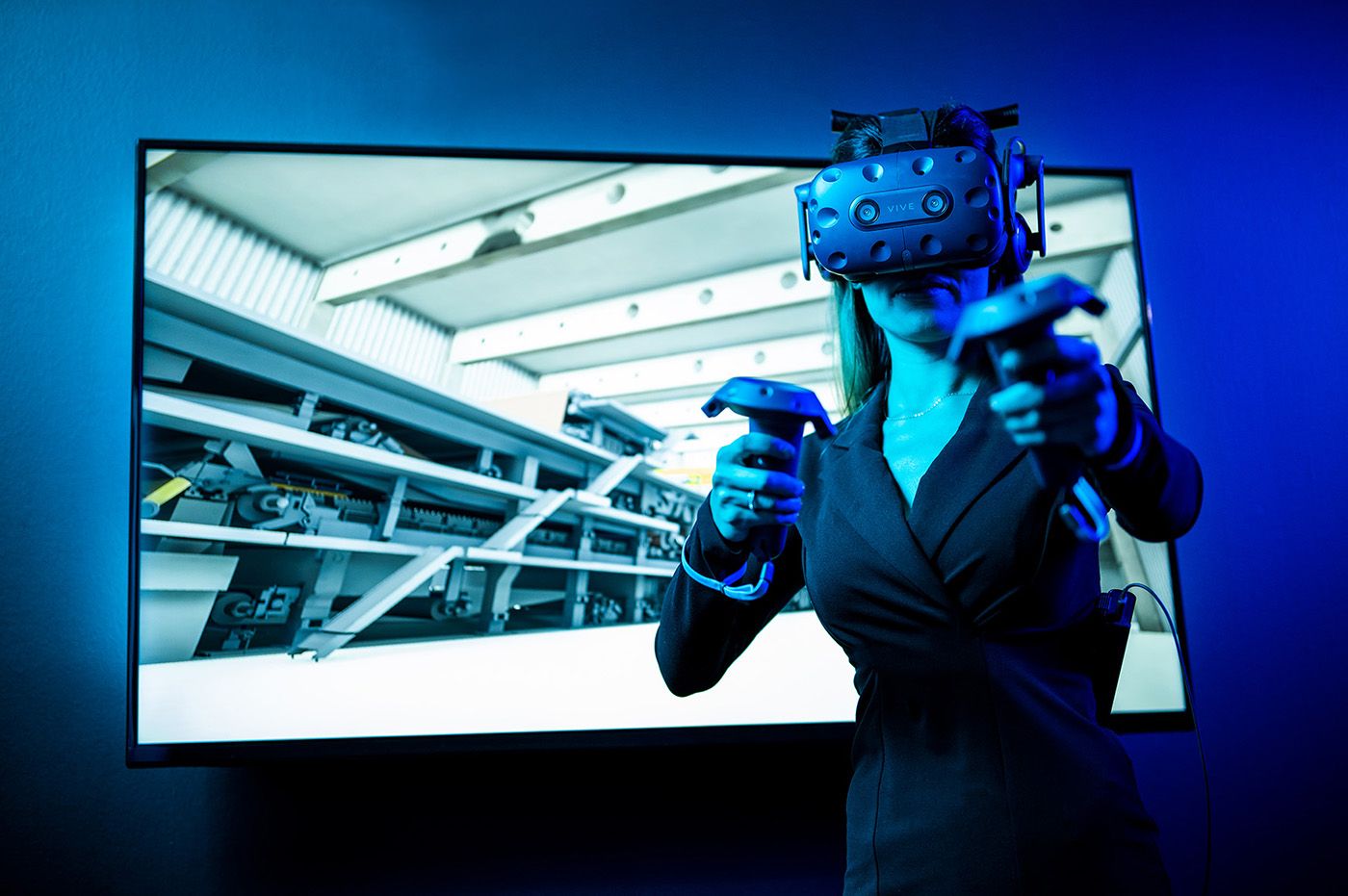 Die von der Firma Voith entwickelte Trainingsmethode basiert auf einem audiovisuellen Kommunikationssystem mit drahtloser Datenbrille. Eine 3D-Simulationssoftware bildet das Modell einer Papiermaschine ab – auf einer vergleichsweise kleinen Fläche im Schulungscenter lässt sich so die komplette Produktionshalle mit rund 120 Metern Länge dreidimensional visualisieren. Einblicke in die Papiermaschine sind dabei nicht nur vom Boden aus möglich. Über Stationen auf verschiedenen Ebenen bietet sich ein Blick ins Herz der Anlage. Vom Stoffauflauf über die Pressenpartie bis hin zur Trockenpartie lässt sich der Weg des Papiers bis zur Aufrollung detailliert verfolgen. Reparaturen können so anschaulich simuliert und Funktionen einzelner Bauteile realistisch dargestellt werden. Ermöglicht wird dies durch die 3D-Visualisierung in einem Headset kombiniert mit Steuergeräten für die Interaktion. Die Schulungsteilnehmer können sich in der Virtual-Reality-Umgebung frei bewegen und werden Schritt für Schritt durch verschiedene Aufgaben geführt. Ein spezielles Design- und Lichtkonzept unterstreicht die Modernität der VR-Technologie.