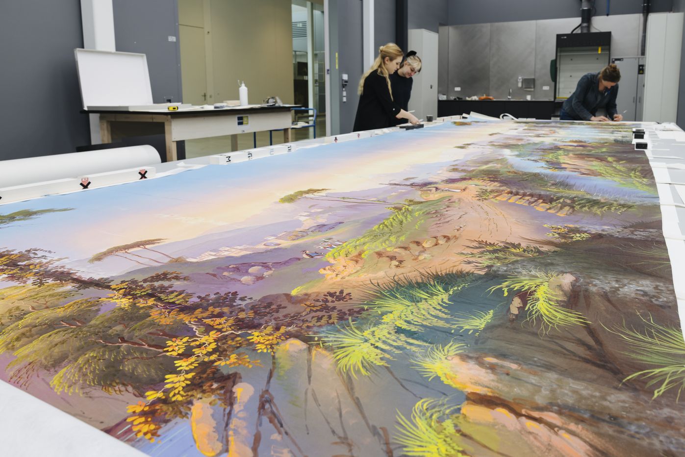 Die größte Entdeckung für die Amsterdamer Museumsmacher bei der Vorbereitung der Ausstellung war das Rundbogengemälde, das jahrzehntelang unbekannt aufgerollt im Depot gelegen hatte – in der Sammlungsdatenbank war es als „Wandbehang“ verzeichnet. In Vorbereitung auf die Ausstellung wurde das Objekt erstmals ausgerollt und untersucht. Archivrecherchen ergaben, dass dieses Werk Teil des Reuzencylorama war, einem gigantischen, 1500 Meter langen, sich bewegenden Panorama von Landschaften der Schweiz, Österreichs und Italiens. Es wurde Mitte des 19. Jahrhunderts von dem deutschen Kaufmann Ferdinand Reichardt in Auftrag gegeben und in Berlin von mehreren Kulissenbauern bemalt. Reichardt tourte mit dem Panorama durch die Niederlande, Belgien und England und gab Shows, die das Publikum auf eine Reise durch Südeuropa entführten.